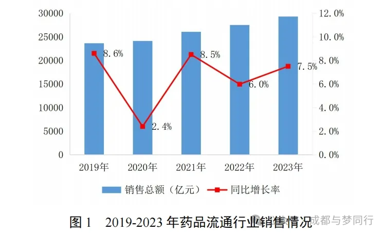 2023 年,全国药品流通市场销售规模持续扩大,全国七大类医药商品销售总额达 29304 亿元,同比增长 7.5%。其中,药品零售市场销售额为 6402 亿元,同比增长 7.6%,尽管增速放缓 3.1 个百分点,但其在整体市场中的占比依然稳定。